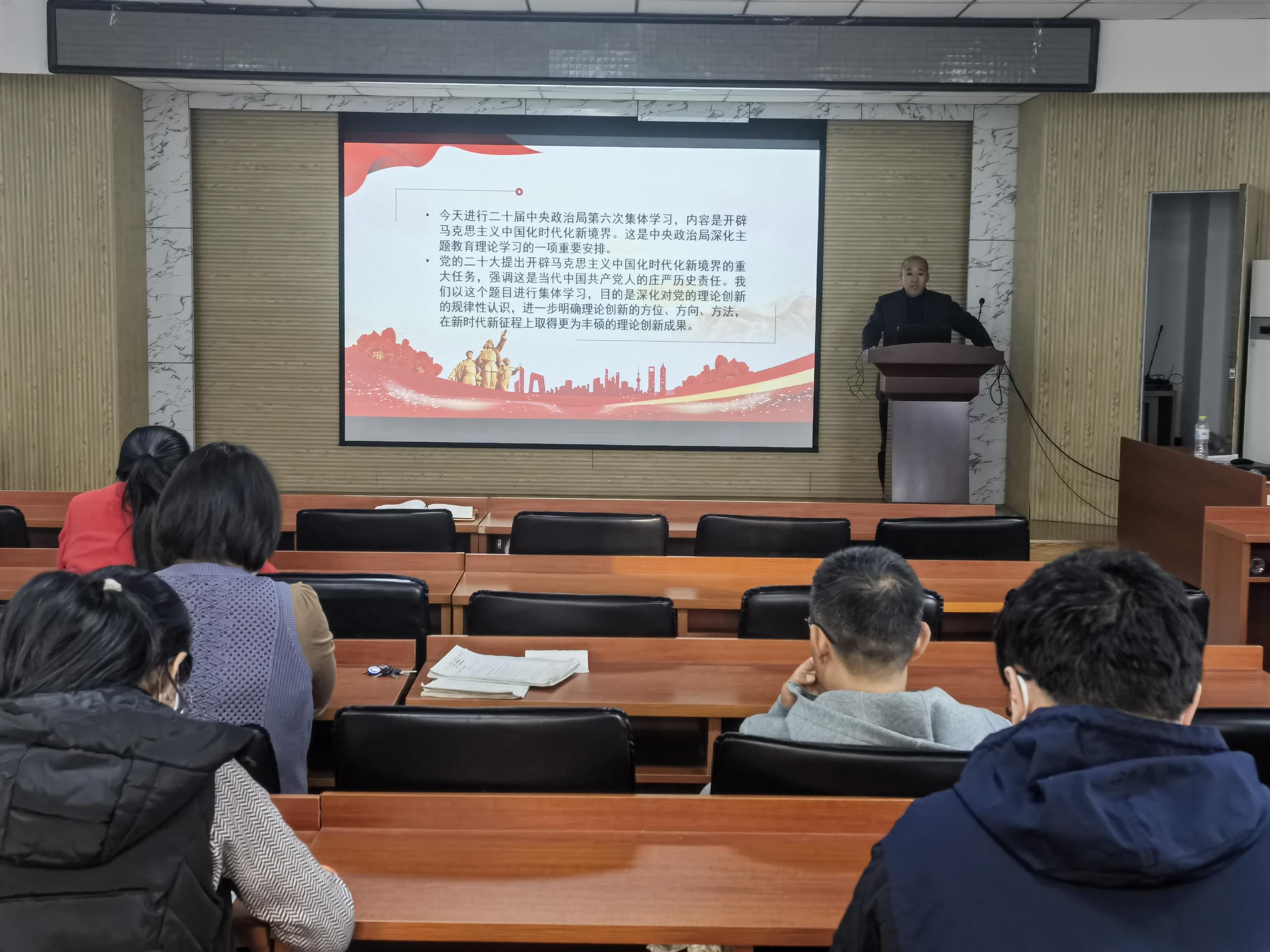 在上党课过程中,杨树国从始终坚守理论创新的魂和根”、“及时科学解答时代新课题”、“着力推进党的创新理论体系化学理化”和“注重从人民群众的创造中汲取理论创新智慧”这四个方面带领大家一起深入学习。通过学习,我们深刻认识到开辟马克思主义中国化时代化新境界的重大任务,是当代中国共产党人的庄严历史责任。广大党员干部作为干事创业的“排头兵”、“主力军”,唯有始终坚持以“知”启航明方向、以“信”领航聚力量、以“行”护航正风气,奋力解锁理论创新的“知信行”密码,实现知信行统一、学思用贯通,方能激荡党的创新理论的思想伟力,凝聚新时代建功立业的磅礴动力,以思想之旗举旗定向,赋能党的伟大事业再创新辉煌。