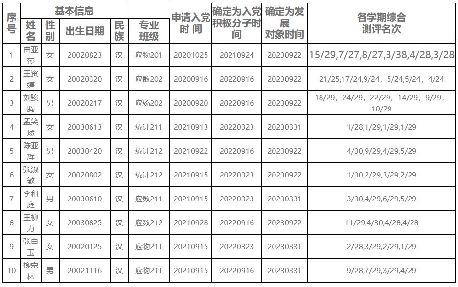 根据本人申请,党组织培养,经beats365唯一官网入口官网员工党支部委员会研究、支部大会讨论并无记名投票表决,拟吸收曲亚莎等10位同志为中共预备党员,现将其有关情况予以公示。