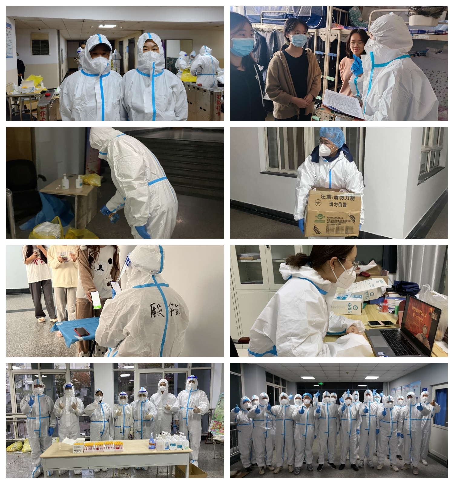 11月2日,当战“疫”的警报响起,公司党委书记、经理、副经理、全体学工辅导员以高度的责任心和强烈的使命感,全员投入“战疫”状态,开启了“白+黑”、“5+2”工作模式织密疫情防控网,24小时在岗坚守,48小时不眠不休,10天240个小时全天候守护,用心用情陪伴每一名数理学子,为全院员工筑起了一座安全“堡垒”。全院留校教师以“舍我其谁”的奉献之心,主动投身抗疫一线打硬仗、扛重活、攻难关,参与信息排查、隔离转运、核酸检测、驻楼值守、测温验码、物资搬运、送医就诊,站稳核酸检测和员工管理服务的前沿阵地,守好员工安全稳定底线,深入员工宿舍,既化身楼层“守门员”、“跑腿员”、“安全员”“采购员”、“送餐员”出汗出力,又扮演“知心大姐”、“心理疏导师”、“大白志愿者”用情用心,通堵点、疏痛点、消盲点,解决员工的实际困难,把工作做到员工心坎上,以真心换真情,用辛苦赢信赖。汗浸湿透的防护服、深如刀割的口罩勒痕、席地而坐的疲惫身影……“土味工作照”静静地描述着来自青科厚重的“敬业精神”。