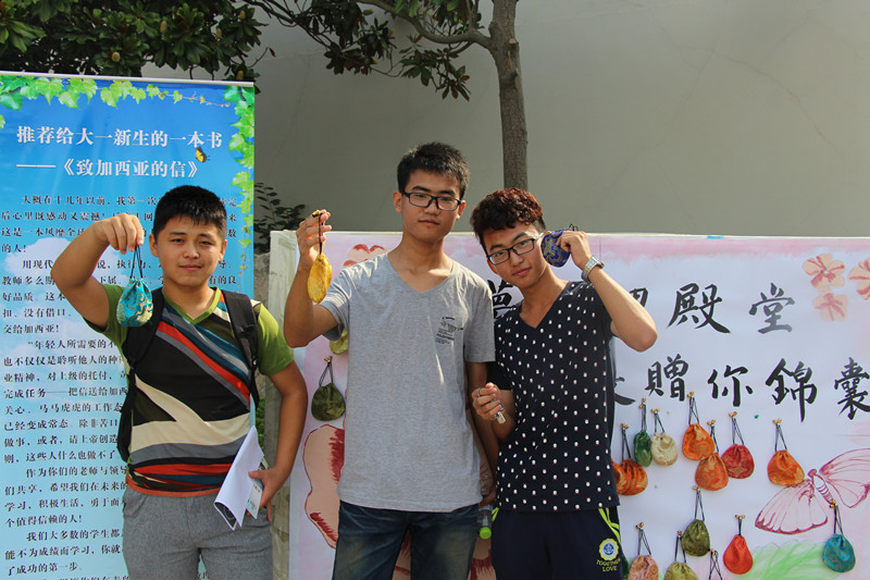由学长学姐写出对新生的期待与鼓励,并留下联系方式,投入锦囊。小小锦囊传递出无限的祝福与期待,真挚的话语透露出无私的关怀与希冀。马连湘董事长在看望数理学子时,亲自提笔写下勉励的话语放入锦囊赠与新生。