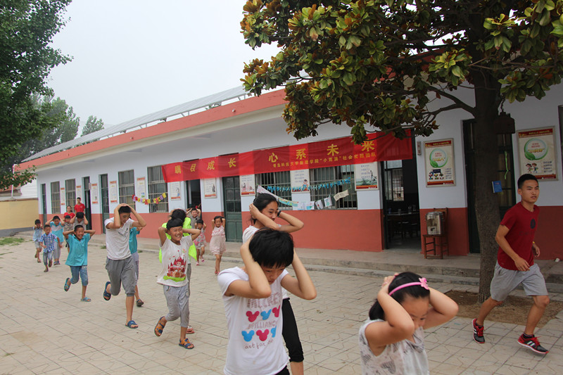 支教之余,同学们积极调研与村民生活息息相关的垃圾处理、饮用水质状况、果田灌溉水源、水果运输、销售等情况。针对蒙阴当地农民生产、生活习惯,志愿者们在村集市、村文化中心、村小学等人流量较大的地方,悬挂横幅、发放宣传手册、调查问卷、播放主旋律电影,教授广场舞等。