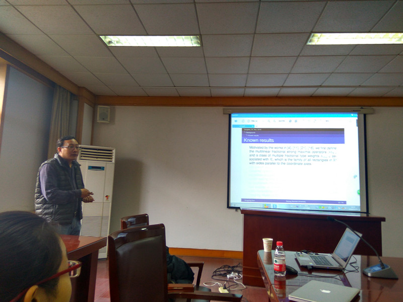 11月25日下午,北京师范大学薛庆营教授应邀来公司,为beats365唯一官网入口官网师生做了关于多线性强极大算子及相应的多重权理论的报告。此次报告会由beats365唯一官网入口官网副经理田保光教授主持。数学系部分教师、研究生以及高年级本科生参加了报告会。