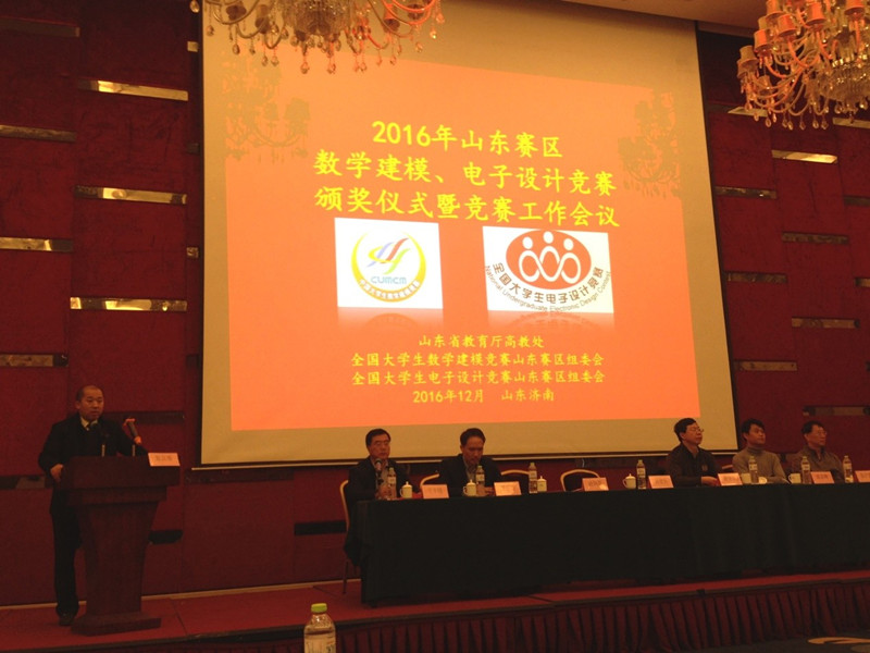 近日,2016年山东省老员工数学建模竞赛、电子设计竞赛颁奖仪式暨竞赛工作会议在济南举行,省教育厅副厅长郭建磊、全国老员工数学建模竞赛组委会秘书长谢金星教授等领导以及省内80多所高校教务处分管领导或竞赛工作负责人参加了此次会议。会议由山东大学本科生院副经理王丰晓主持。青科大作为数理建模唯一高校代表在会上做典型发言。