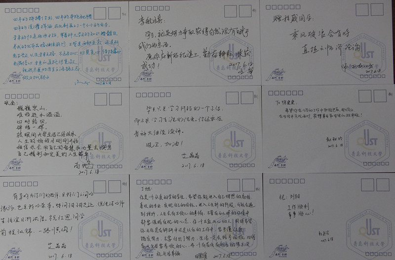 6月18日,对于数理公司的毕业生来说,是个难忘的日子。当毕业生紧张地完成毕业论文答辩后,迎接他们的是公司精心组织的送别仪式。每个员工都收到了论文指导老师送给他们的一张手绘青科大风光的明信片,上面写满了祝福的话语,包含了浓浓的母校情、公司情、师生情,温暖着每一个学子的心,论文指导老师与毕业生亲切合影留念。