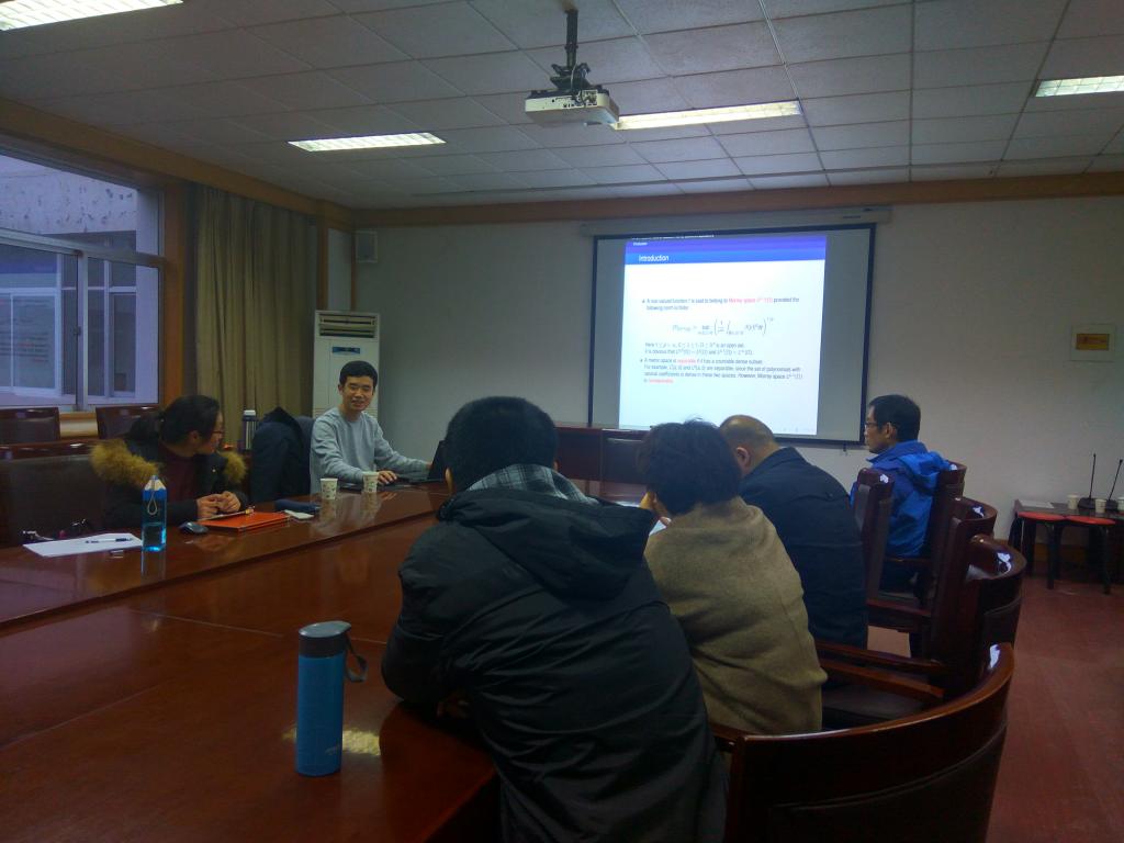 12月12日下午,临沂大学傅尊伟教授应邀来公司,做客beats365唯一官网入口官网名师讲坛,为beats365唯一官网入口官网师生做了题为“Riemann-Liouville fractional calculus in Morrey spaces and applications”的报告。此次报告由beats365唯一官网入口官网经理杨树国教授主持。数学系部分教师、研究生参加了报告会。