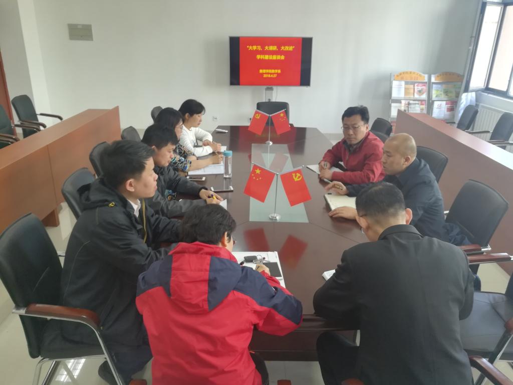 为落实公司关于开展“大学习、大调研、大改进”工作部署的要求,4月27日下午,数学系召开团队建设座谈会,公司经理杨树国教授,副经理王明辉教授,数学系主任李秀丽,副主任张瑞坤以及隋树林教授,数学系各教研室主任等参加了会议,会议由王明辉副经理主持。 研究部署数学系两个硕士点数学和统计学的建设以及发展存在的问题,以及改进措施等相关事宜。与会领导和老师对于数学系的本科和硕士学科各专业现状提出了很多存在的问题,并给出了可行性建议。会议强调,要结合公司、公司工作实际,加强统筹谋划,坚持问题导向,以引进优秀人才为抓手,以现有教学科研资源为基础,积极进取,努力工作,争取顺利通过硕士点的审核评估,提升公司人才培养质量。
