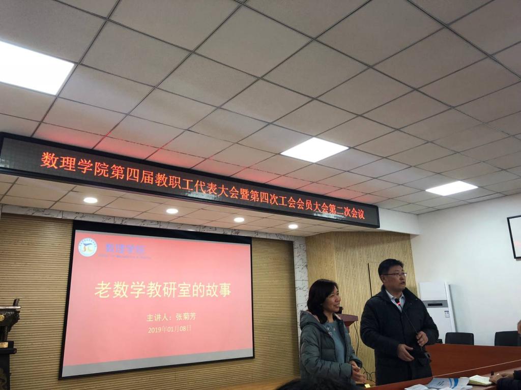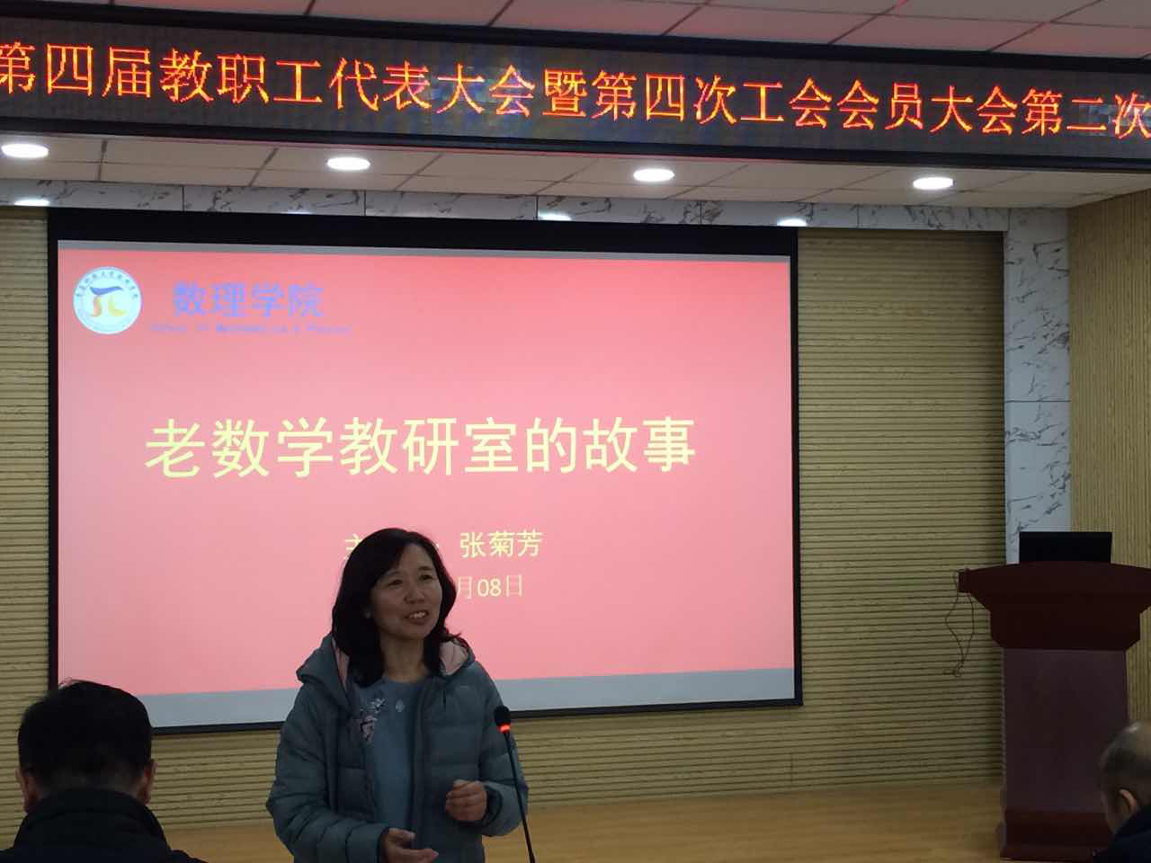 1月8日下午,beats365唯一官网入口官网邀请数学系张菊芳老师作了题为《老数学教研室的故事》的讲座。讲座在D2楼220举行,beats365唯一官网入口官网副经理郭广海主持,公司领导以及全体老师参加了此次活动。