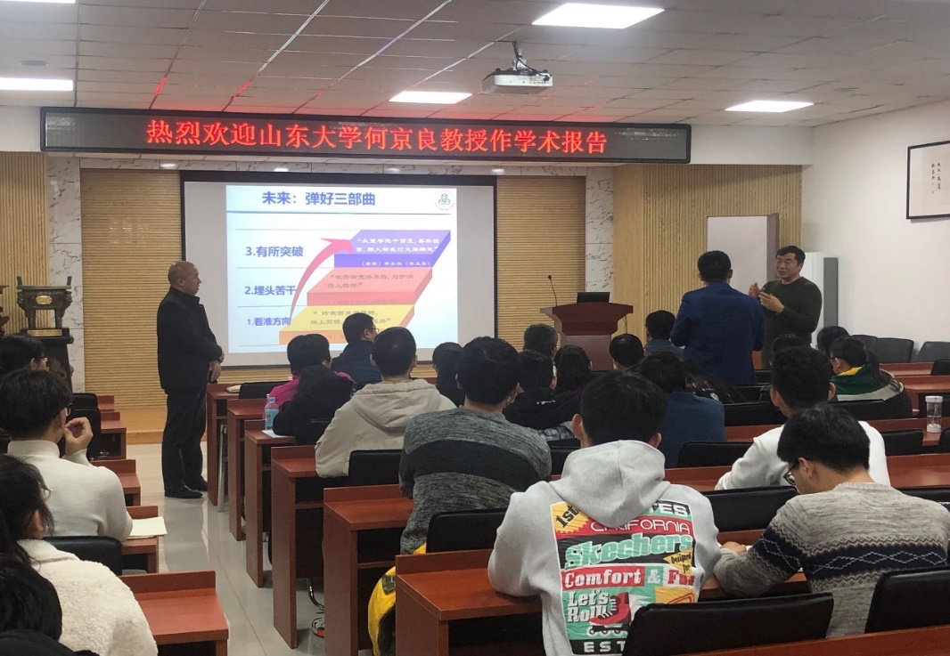 11月22日上午,山东省首批“泰山学者”特聘教授、山东大学晶体材料国家重点实验室何京良教授应beats365唯一官网入口官网邀请,在D2-220beats365唯一官网入口官网报告厅作了主题为《晶体材料与激光器件》的学术报告,报告会由beats365唯一官网入口官网经理杨树国教授主持,山东科技大学、青岛大学及beats365唯一官网入口官网部分教师、研究生和本科生聆听了此次报告。