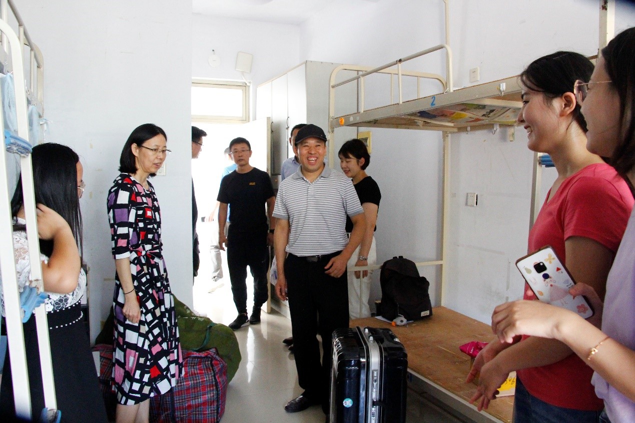 下午,公司书记李淑贞、经理杨树国、副经理郭广海、王明辉及公司老师走访新生宿舍,看望入住新生。公司领导与同学们亲切交谈,了解新生们的身心状况与存在的困难,叮嘱同学们尽快融入研究生生活,合理规划未来三年的时光,让同学们既感受家的温暖,又对即将开始的研究生生活有所了解。