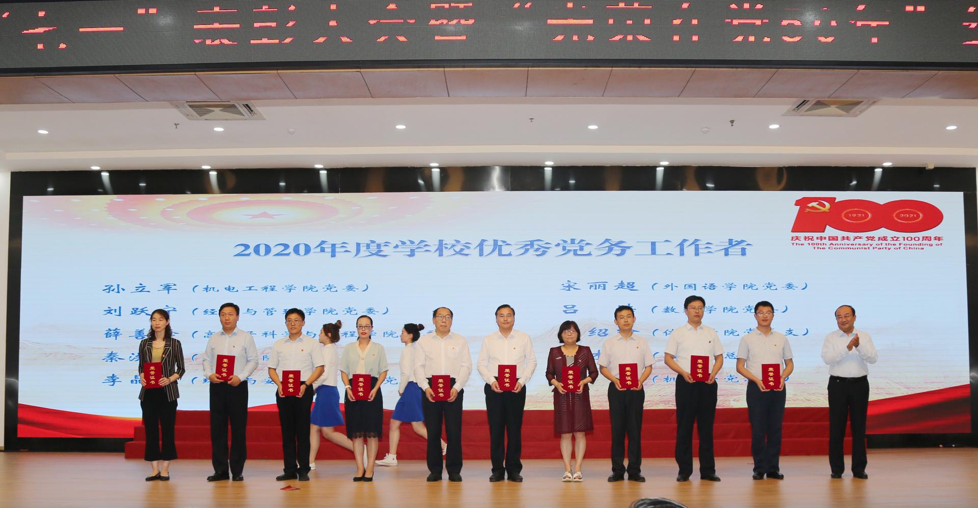 为隆重庆祝中国共产党成立100周年,进一步增强基层党组织凝聚力、战斗力、创造力,强化党员意识,表彰先进、树立典型,6月29日下午,beats365唯一官网入口官网“七一”表彰大会暨“光荣在党50年”纪念章颁发仪式于崂山区第二报告厅隆重召开。校领导,院级党组织书记、副书记,党支部书记代表,党员代表参与会议。