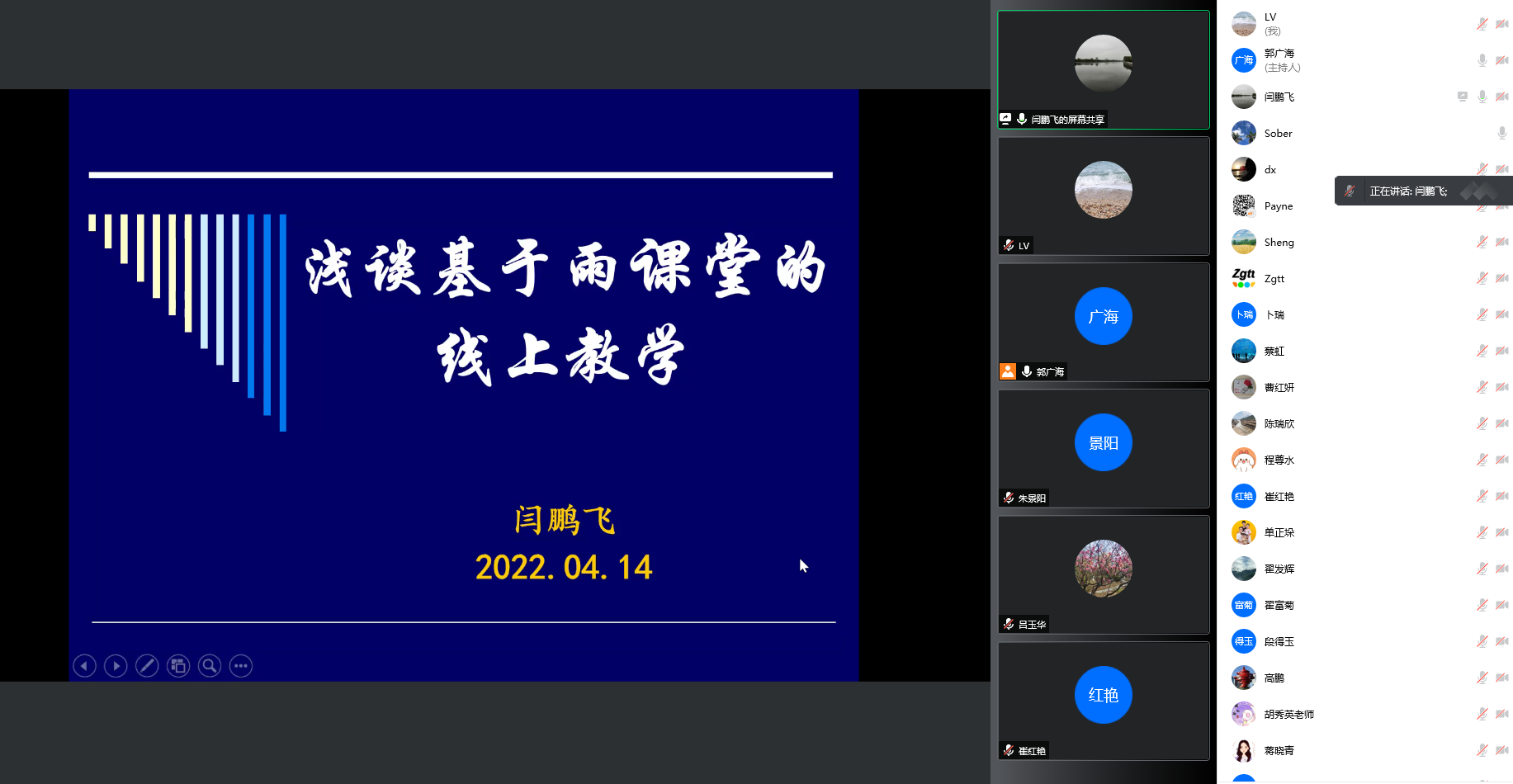 朱景阳老师结合自己的使用经验,向老师们介绍了超星同步课堂的使用细节及注意事项。该平台不仅可以满足在授课时让员工观看PPT,同时可以听到教师的声音,对于后疫情时期的线上直播+线下教学相结合的教学方式是非常有益的探索。