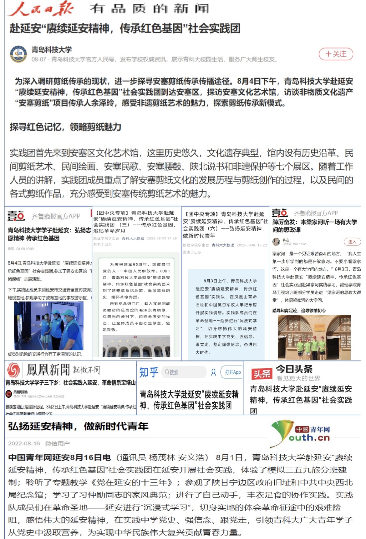 数理学子的实践风采先后被人民日报、中国青年网、凤凰网、今日头条 、齐鲁晚报等10余家国家级、省市级新闻媒体报道,展现了数理学子用脚步丈量祖国大地,在实践中坚定理想信念、磨练意志品质,在服务社会中勇担时代使命、彰显人生价值,把爱国情、强国志、报国行自觉融入新时代追梦征程的青春风采。