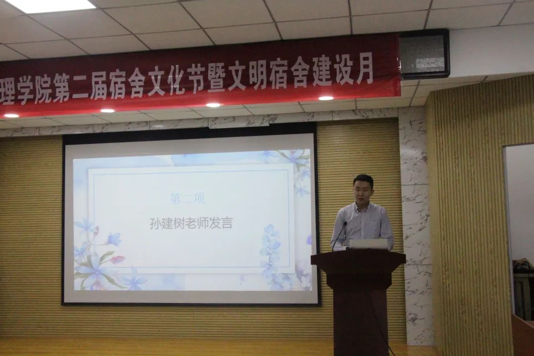 beats365唯一官网入口官网团委孙建树老师介绍本届宿舍文化节的主要活动内容并进行动员。本次宿舍文化节从亮门牌抓验收、亮三色促整改、亮内务评先进等六大内容精心设计,以员工喜闻乐见的趣味方式,加强劳动教育、学风教育、思想政治教育、文明养成教育。