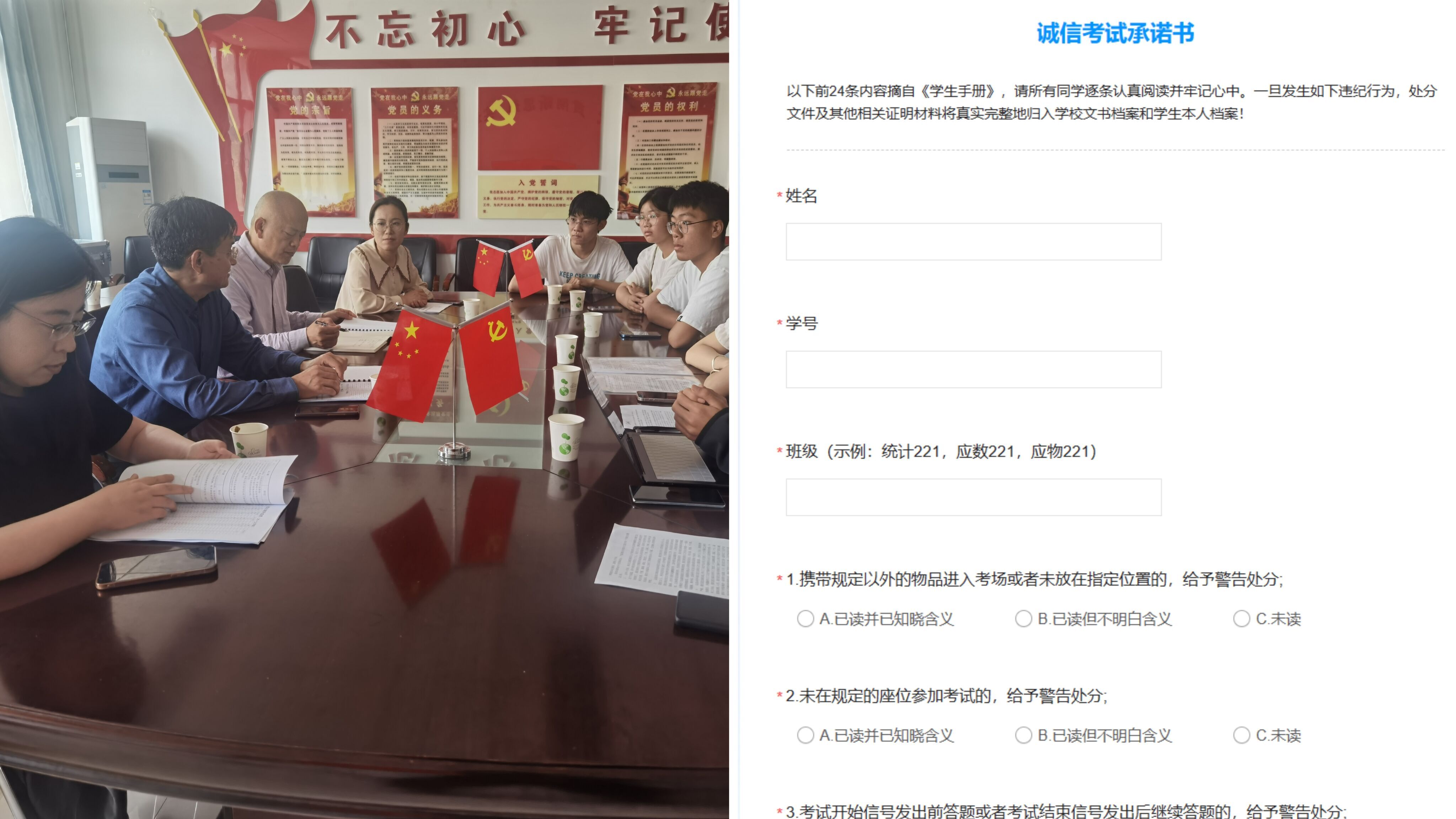 落实承诺践诺,强化责任感。逐个梳理学业预警员工情况,辅导员一对一谈话,根据员工实际情况制作个性化学习方案。学期末,制作带手写签名的电子版诚信考试承诺书并组织全体员工签订,通过承诺践诺的形式引导员工逐项重温员工手册中作弊相关的纪律处分规定,严肃考试纪律,以考风促学风。