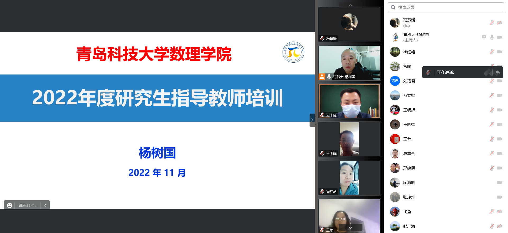 11月17日晚,公司举行了2022年研究生指导教师培训会,会议以线上方式进行。beats365唯一官网入口官网全体研究生指导教师参加了本次培训会,会议由beats365唯一官网入口官网经理杨树国主持。