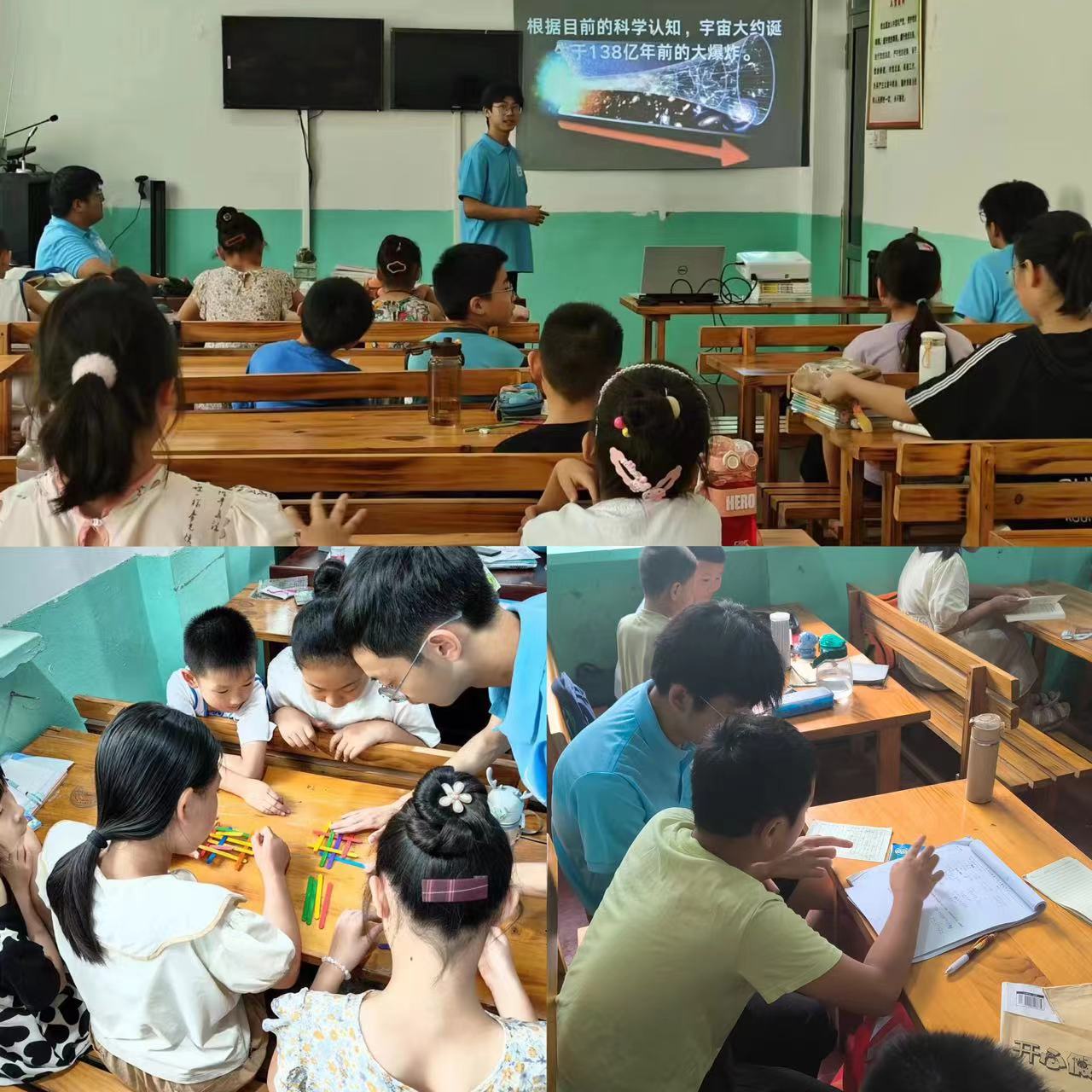 队员抵达第一书记驻村后,即刻投身实践之中。针对前期对接地实际需求,队员们了解到村子里少年儿童较多,面临着部分科目需要查缺补漏的难题。队员们结合自己的专业优势,在数学、物理、英语等科目上针对当地少年儿童在学习中遇到的难题给予详尽解答和指导。在辅导过程中,志愿者们耐心细致地向小学员们阐释每一个问题,确保每个孩子都能深入理解和掌握所学知识。