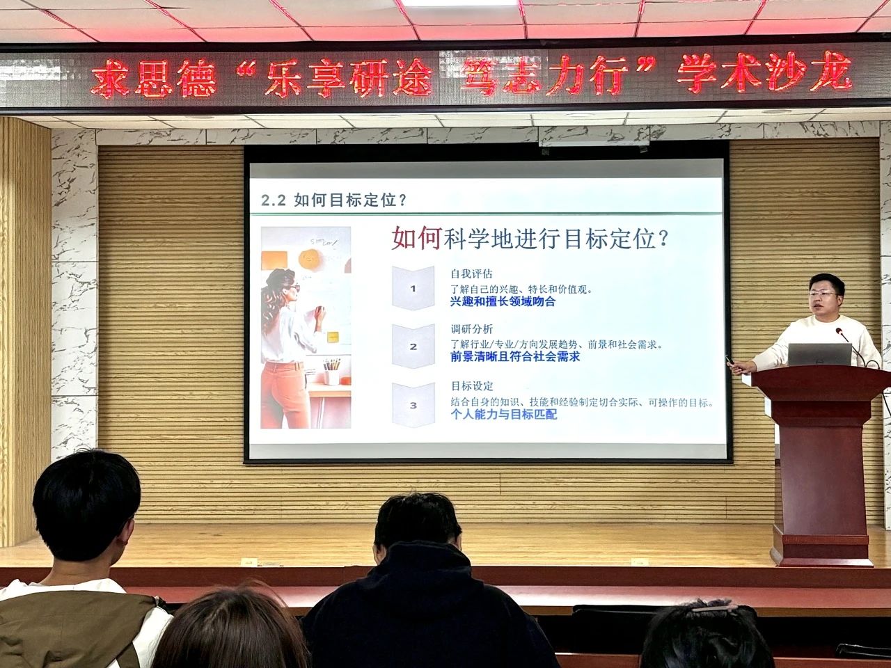 2024年10月22日,beats365唯一官网入口官网研究生会成功举办了“乐享研途 笃志力行”求思得论坛活动,旨在为公司研究生提供一个交流科研心得、探讨平衡生活学习方法的平台。本次活动邀请了青年教师刘庆亮以及两位优秀的22级学姐赵炜和王冬梅来分享自己的经验。公司2024级和2023级研究生参与此次活动。