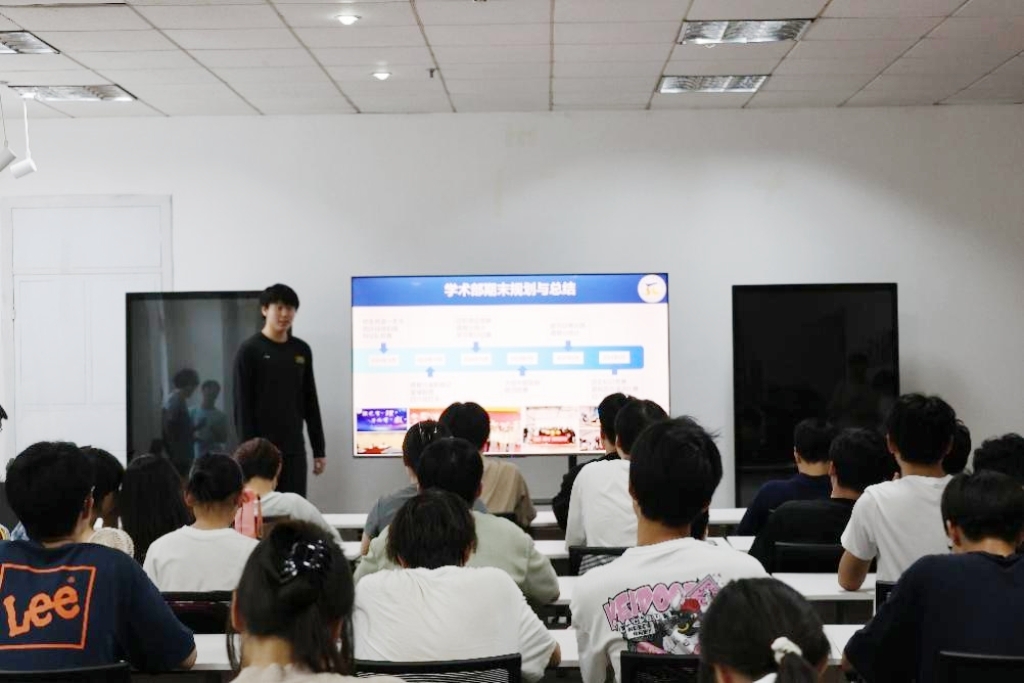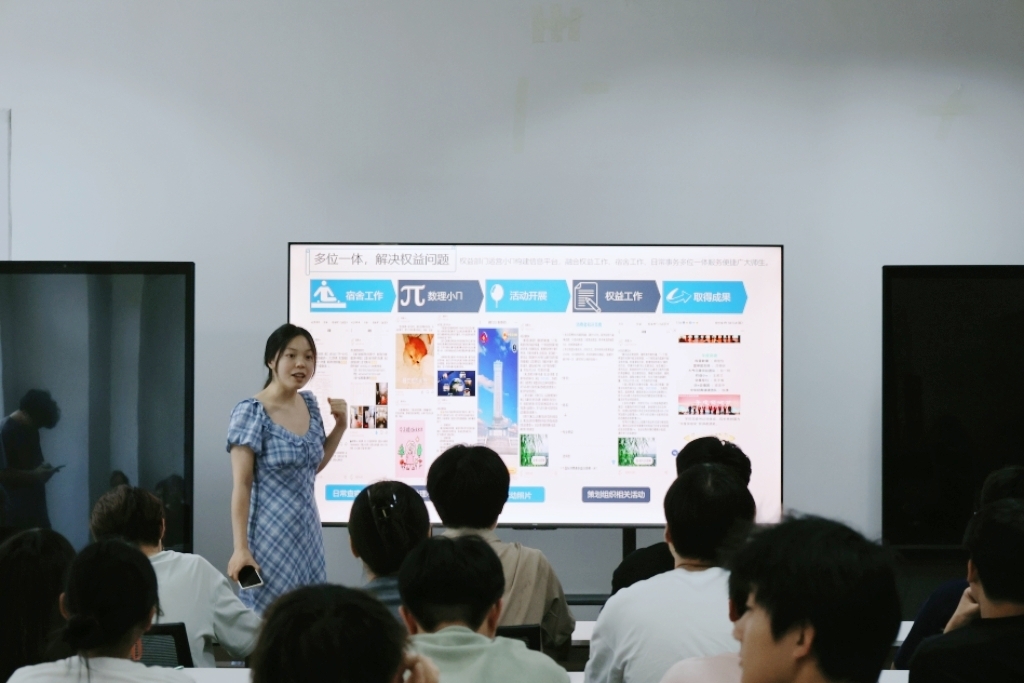 会上,员工会负责人葛小乐用“三个关键词”概括本学期工作:思想铸魂、品牌升级、服务增效。思想铸魂方面,以“活力讲堂”“星空讲堂”为载体,累计开展主题宣讲12场、学业专题讲座28场,覆盖科研竞赛、保研考研等热点需求,服务同学超300人次;品牌活动升级中,“数理文化节”π系品牌矩阵扩容,数学建模竞赛参与人数同比增长20%,趣味运动会、“数风杯”篮球赛、“理润杯”辩论赛等文体活动反响热烈;服务效能提升方面,“有事找小π”反馈机制闭环解决同学诉求83项,满意度达95%,内部考核制度优化推动部门协作效率提升30%。