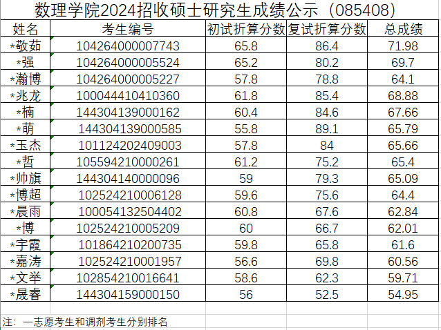 2024招收硕士研究生复试成绩公示(085408光电信息工程)