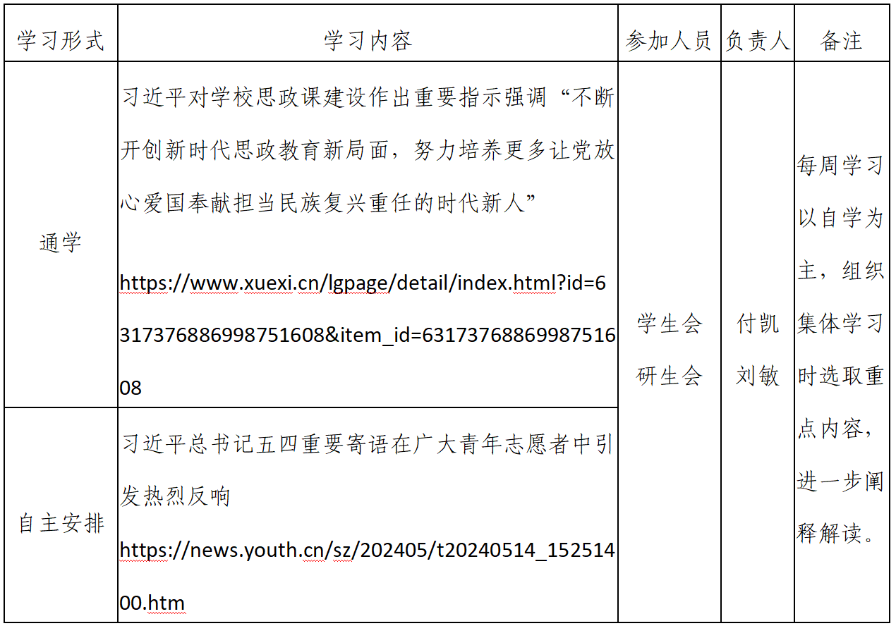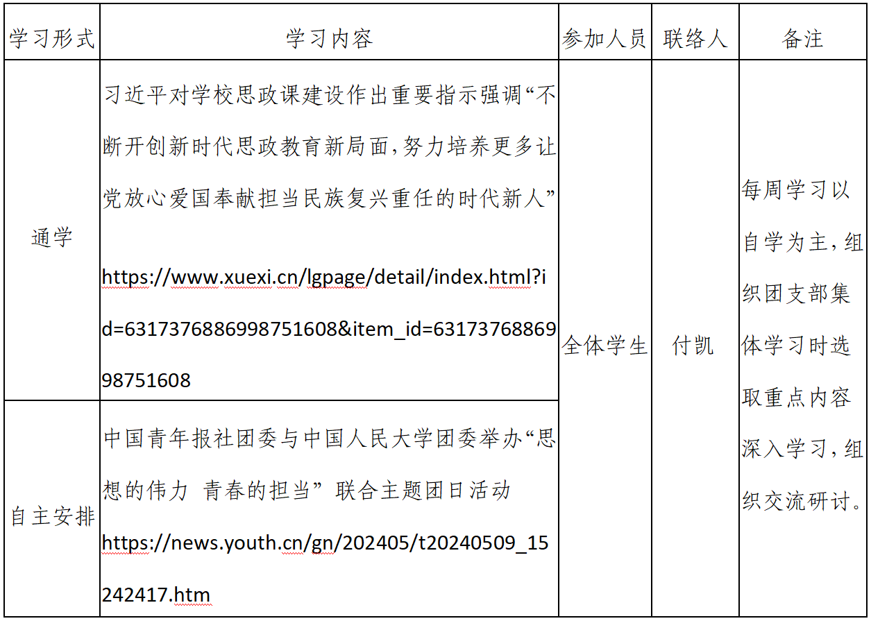 2024年春季学期第11周beats365唯一官网入口官网团支部学习安排