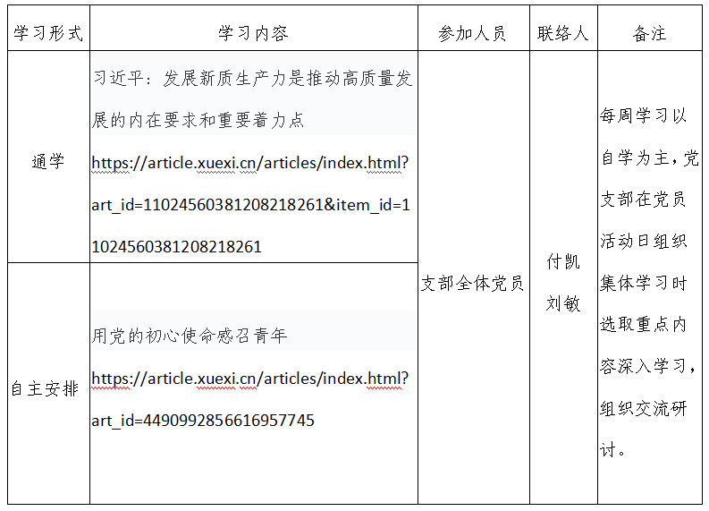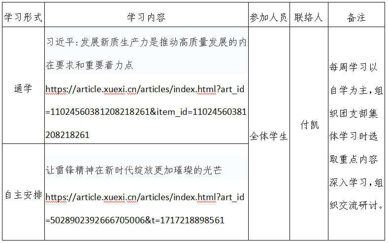 2024年春季学期第14周beats365唯一官网入口官网团支部学习安排
