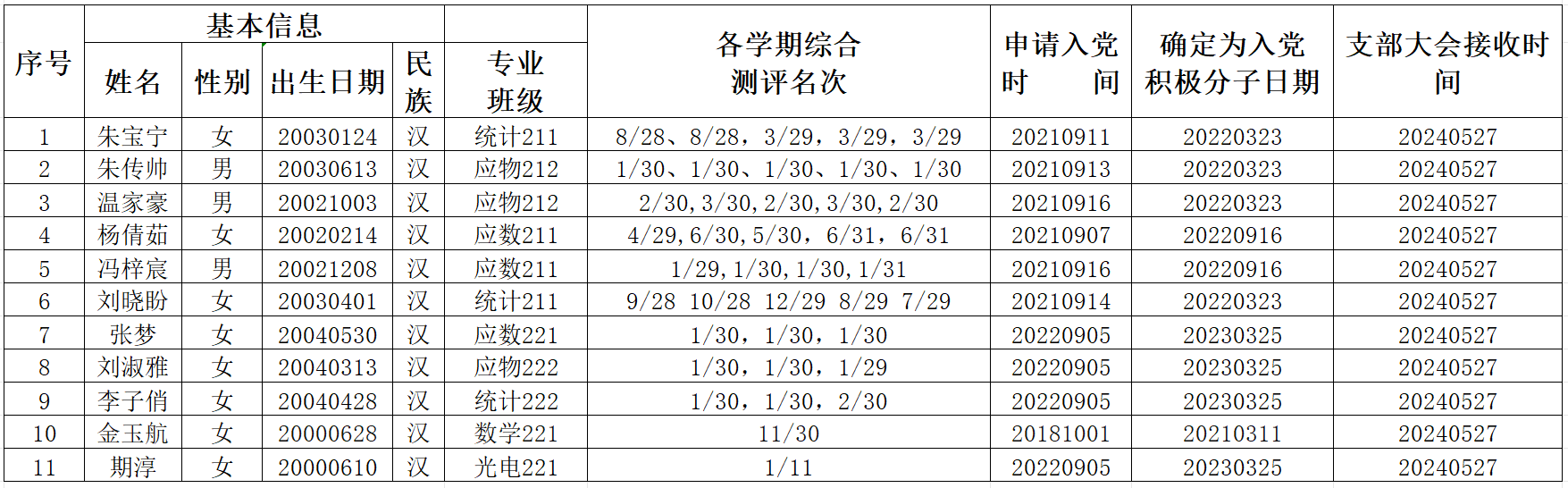 根据本人申请,党组织培养,经beats365唯一官网入口官网员工党支部、研究生党支部委员会研究、支部大会讨论并无记名投票表决,拟吸收朱宝宁等11位同志为中共预备党员,现将其有关情况予以公示。