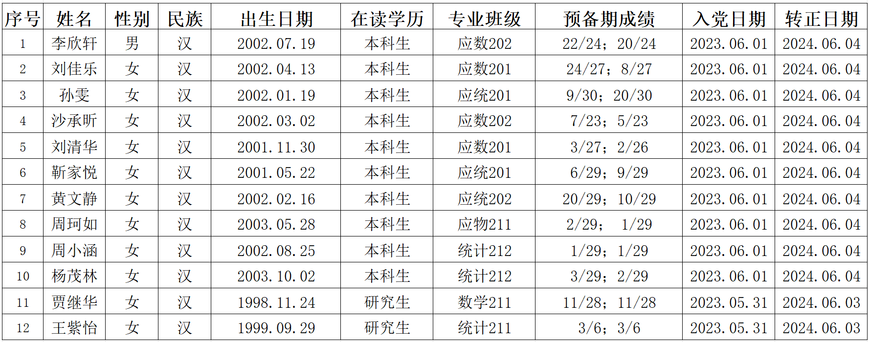 经beats365唯一官网入口官网员工党支部、研究生党支部研究讨论,公司党委审核,拟将李欣轩等12位同志转为中共正式党员,现将其有关情况予以公示。