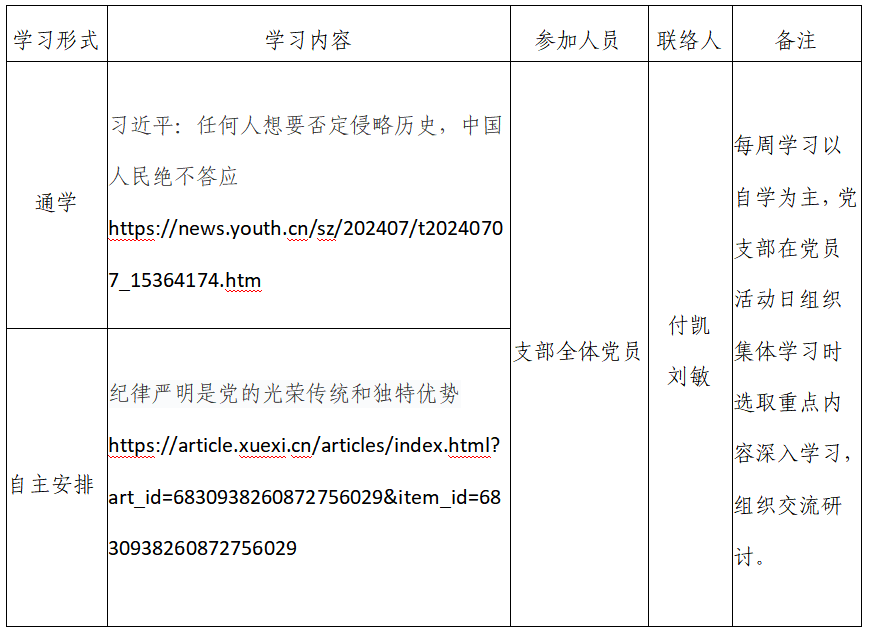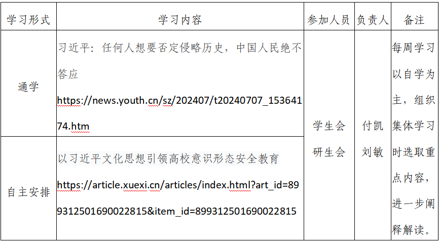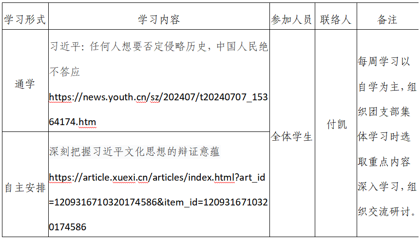 2024年春季学期第19周beats365唯一官网入口官网团支部学习安排
