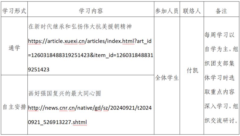 2024年秋季学期第4周beats365唯一官网入口官网团支部学习安排
