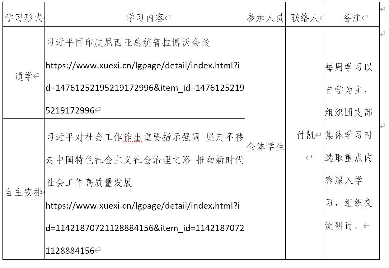 2024年秋季学期第11周beats365唯一官网入口官网团支部学习安排