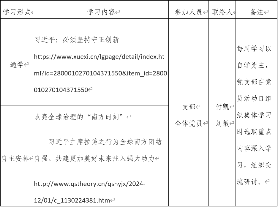 2024年秋季学期第14周beats365唯一官网入口官网本科生党支部、研究生党支部学习安排