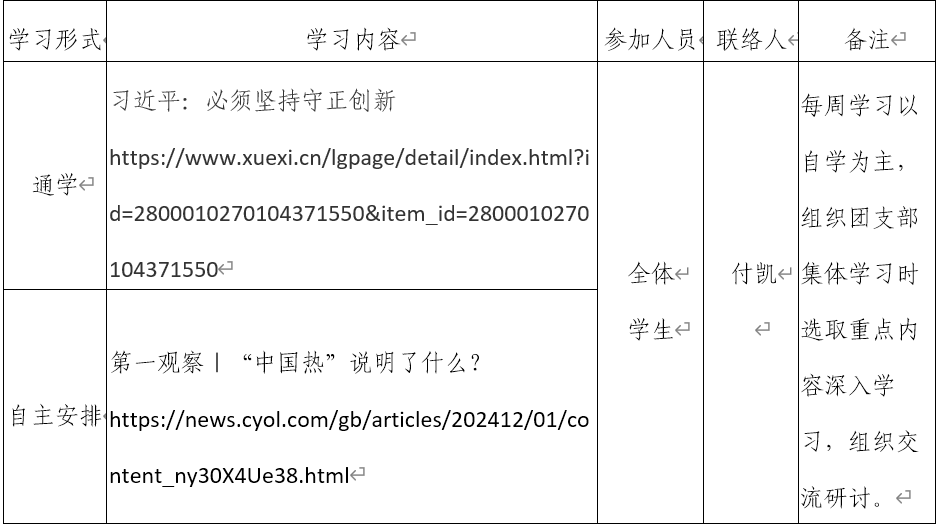 2024年秋季学期第14周beats365唯一官网入口官网团支部学习安排