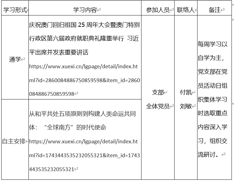 2024年秋季学期第17周beats365唯一官网入口官网本科生党支部、研究生党支部学习安排
