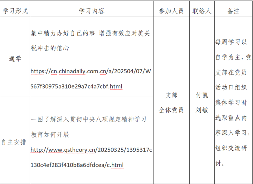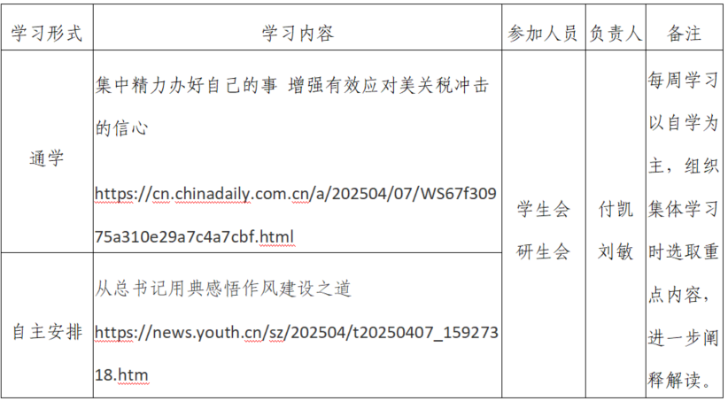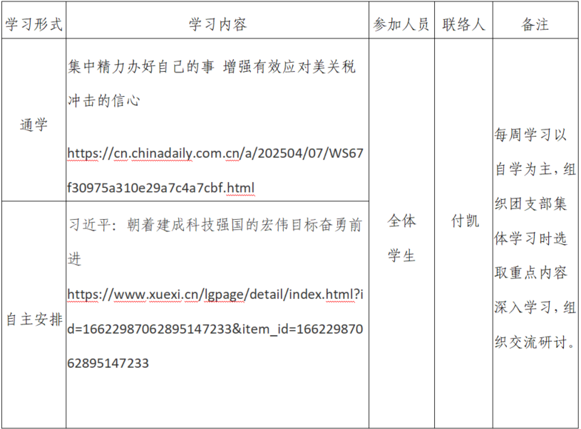 2025年春季学期第6周beats365唯一官网入口官网团支部学习安排
