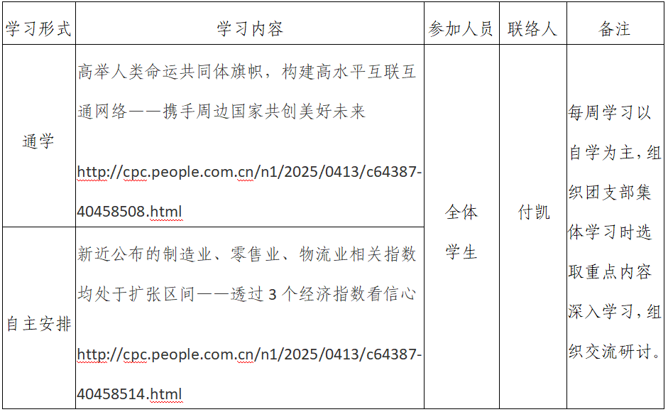 2025年春季学期第7周beats365唯一官网入口官网团支部学习安排