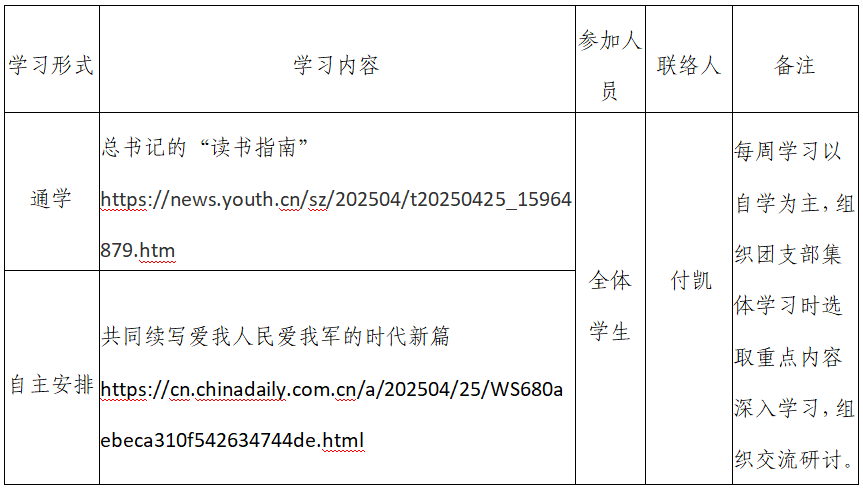 2025年春季学期第9周beats365唯一官网入口官网团支部学习安排