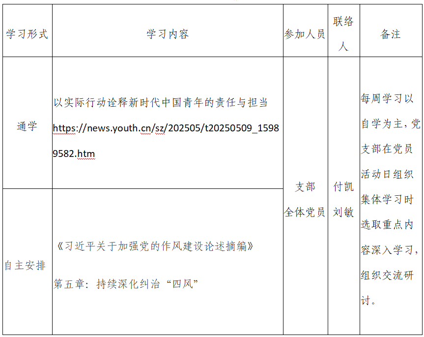 2025年春季学期第11周beats365唯一官网入口官网团支部学习安排