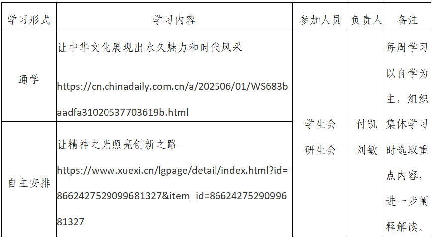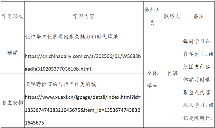 2025年春季学期第14周beats365唯一官网入口官网团支部学习安排