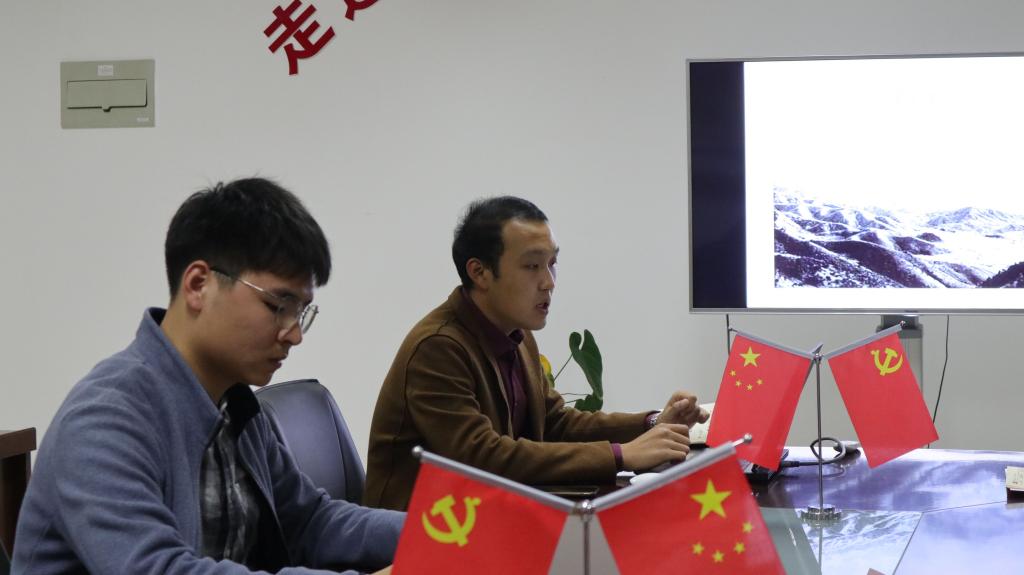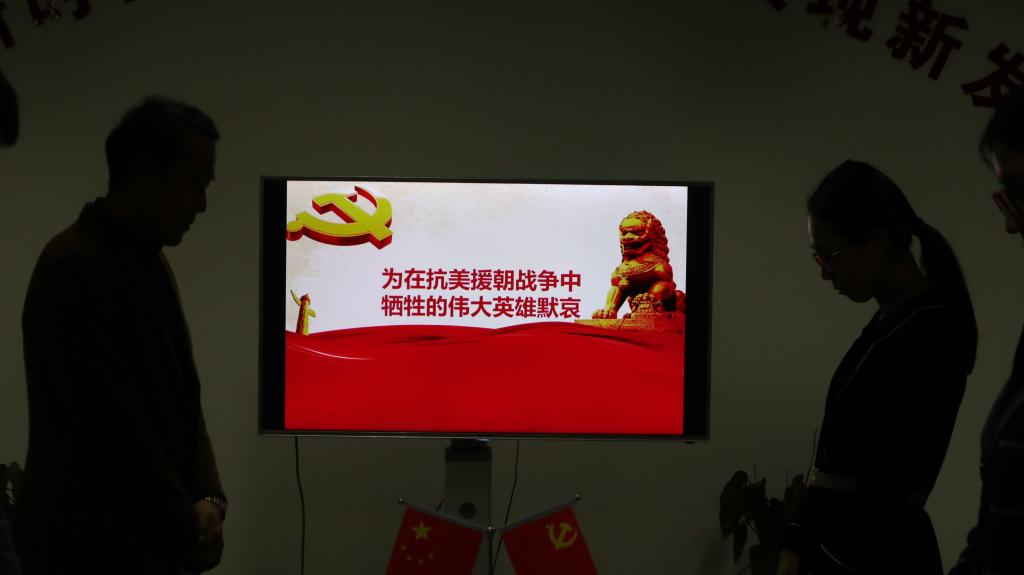 刘启明同志带领支部重温抗美援朝历史,学习习近平总书记在纪念中国人民志愿军抗美援朝出国作战70周年大会上的重要讲话精神。马浩然同志讲述祖父在上甘岭战斗的故事,他的祖父生前是一名上甘岭战斗英雄。