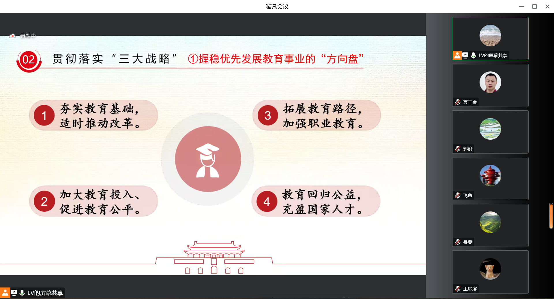 吕浩从“战略解读”和“贯彻落实”两大方面向党员同志宣讲分享。他指出“科教兴国、人才强国、创新驱动发展”三大战略是历史传承、时代要求和未来关键,要深刻理解、用心体会。贯彻落实三大战略任务,要牢牢握稳优先发展教育事业的“方向盘”、深深夯实科技创新治理体系这个“压舱石”、细细答好培育拔尖创新型人才这个“大考卷”。作为教师,要牢记教育初心,不忘为党育人、为国育才使命。始终心怀“为谁培养人、培养什么人、怎样培养人”这一教育的根本问题,努力做教育改革的奋进者、教育扶贫的先行者、员工成长的引导者。