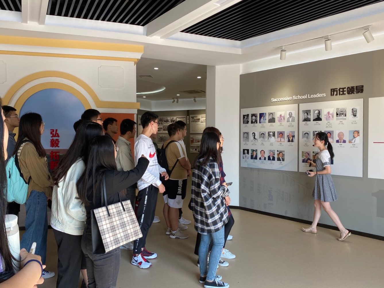 同学们在校史馆工作人员的引导下,参观了校史馆各部分展览,工作人员讲解了公司的历史沿革、科大精神、橡胶品格,公司各个发展阶段的特点及优秀教师、优秀员工、教学科研成果等。