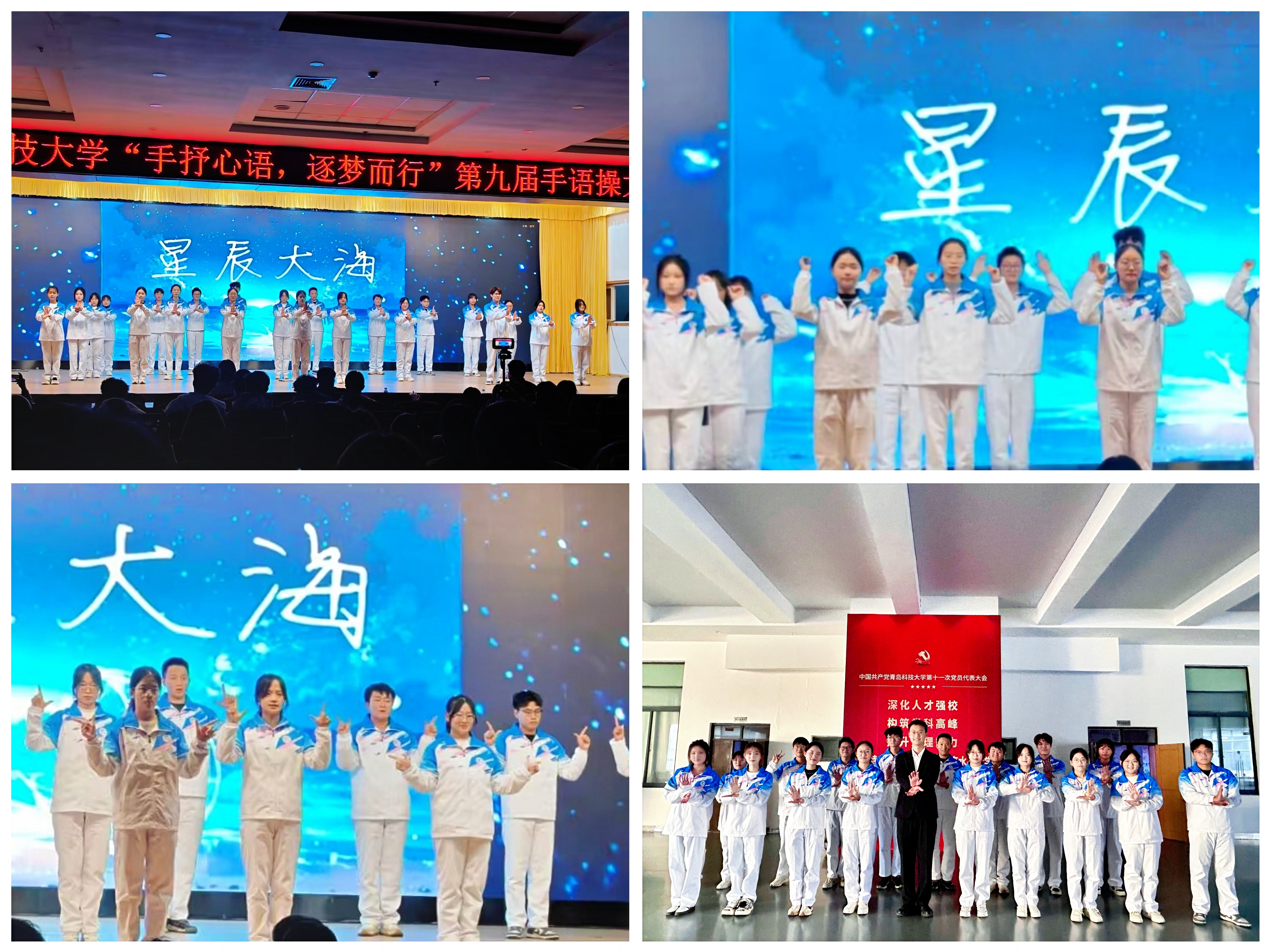 比赛当天,伴随《星辰大海》旋律的响起,beats365唯一官网入口官网队员们的手指在青春向上的歌声中绽放出生命的跃动。“翅膀”队形的巧妙变换,手语操与深情朗诵的完美融合,不仅传达了歌曲的情感深度,更让无声的手语焕发出了震撼人心的有声力量。