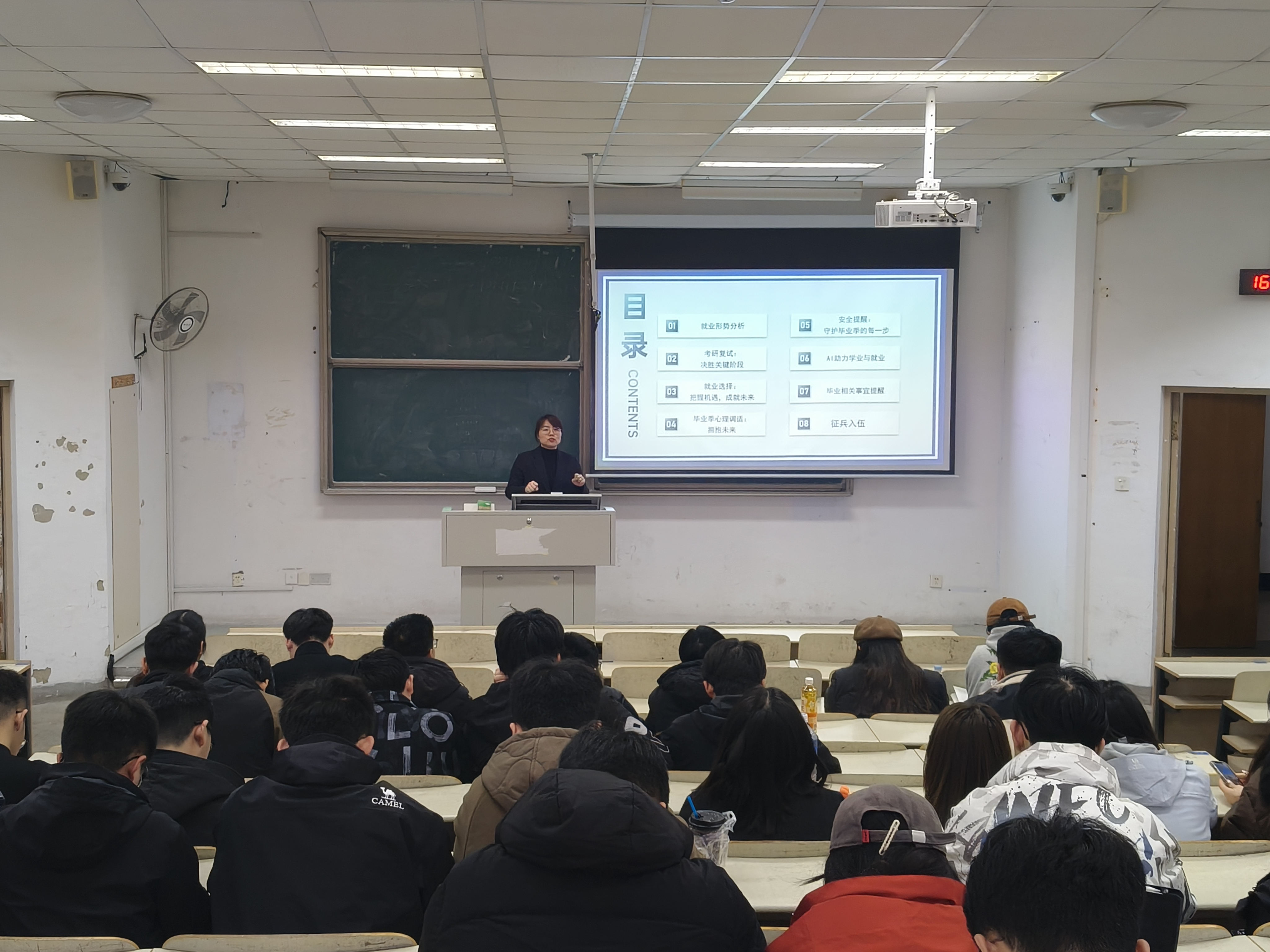 会上,付凯以详实的数据和生动的案例,深入剖析了当前就业市场的机遇与挑战。她指出,随着数字经济与人工智能的快速发展,beats365唯一官网入口官网毕业生在数据分析、金融科技、AI算法等领域具有显著优势,但同时也面临着竞争加剧的压力。为此,她鼓励毕业生们尽早明确目标,主动提升核心竞争力。针对考研学子,从备考策略到面试技巧,为同学们提供了切实可行的建议。在职业选择方面,付凯强调先就业,再择业”,建议毕业生们结合个人兴趣与行业趋势,积极关注各类招聘信息理性规划职业路径。此外,面对毕业季可能出现的心理压力,辅导员从心理调适、情绪管理等角度为同学们支招。安全教育环节,付凯以真实案例警示毕业生们提高防范意识,注重网络安全会上,辅导员还聚焦AI技术对就业市场的影响,鼓励毕业生们主动学习新技能,拥抱技术变革学会通过AI为求职助力。最后,付凯详细解读了征兵入伍政策,号召有志青年投身军营,报效祖国。