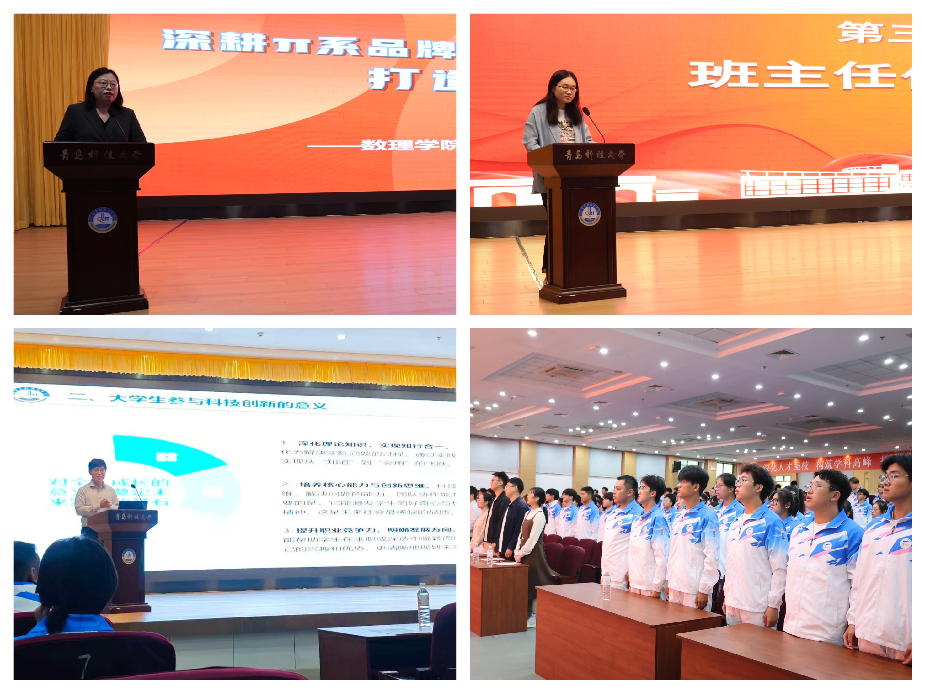 李雯雯系统回顾了过去一年π型班级在思想引领、科研学习、社会实践等方面取得的丰硕成果,彰显了公司特色育人模式的显著成效。数学系主任张瑞坤、物理系主任高鹏分别为格物致知班、思享悦读班、雷锋团支部、科研先锋班π型班级授旗,进一步打造公司特色育人品牌